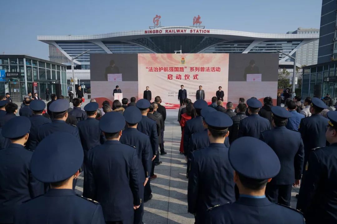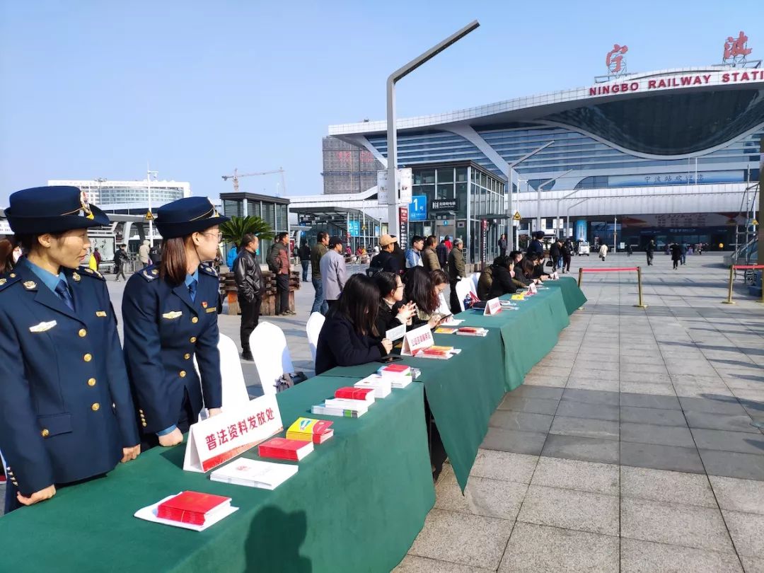 冬日里的鐵路寧波站南廣場客流如潮。在第二個全國“憲法宣傳周”之際,昨天上午,省交通運輸廳聯(lián)合省司法廳,共同舉辦的交通運輸普法宣傳現(xiàn)場會在這里,正式啟動“法治護航強國路”系列普法活動。