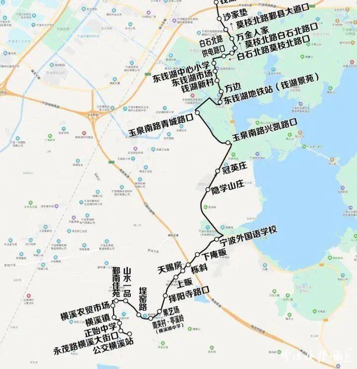2、撤銷因臨時改道增設(shè)的橫溪廣電站、橫溪鎮(zhèn)政府、豐樂苑小區(qū)、孔家潭、冠英莊北站點(diǎn)及紅林↓、莫枝北路鄞縣大道口↑站點(diǎn)。