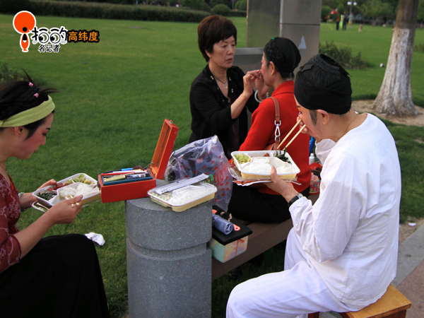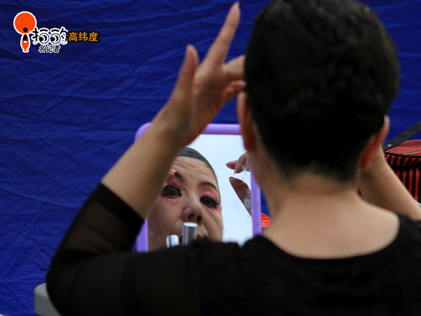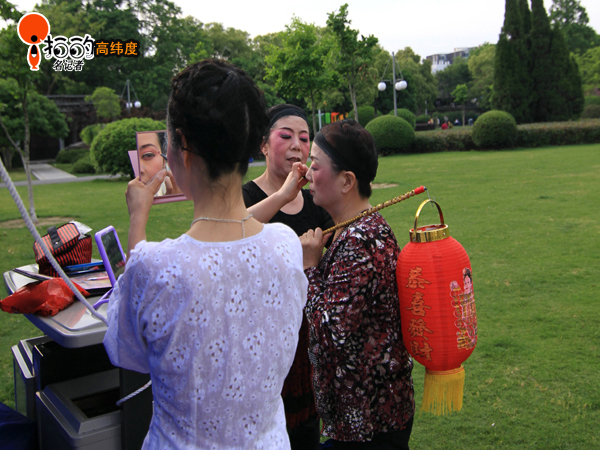 昨天下午(5月5日),中山廣場(chǎng)群眾文藝演出前拍攝的照片,演員們正在化妝的場(chǎng)景。