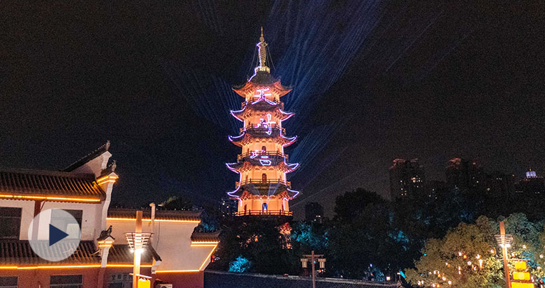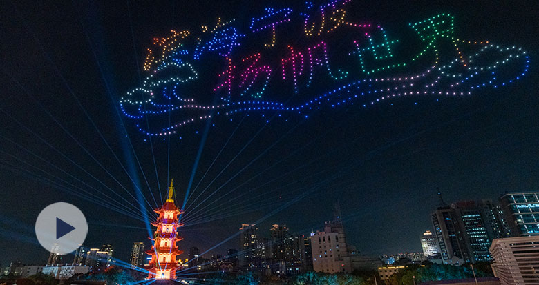 “寧波名城日”天封塔正式亮燈 800架無人機演繹千年文脈