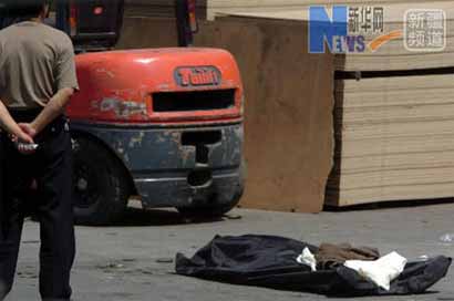 烏魯木齊市華凌市場(chǎng)內(nèi),被害工人的遺體被蒙上黑布