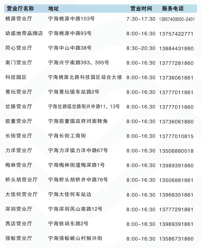 營業(yè)廳地址