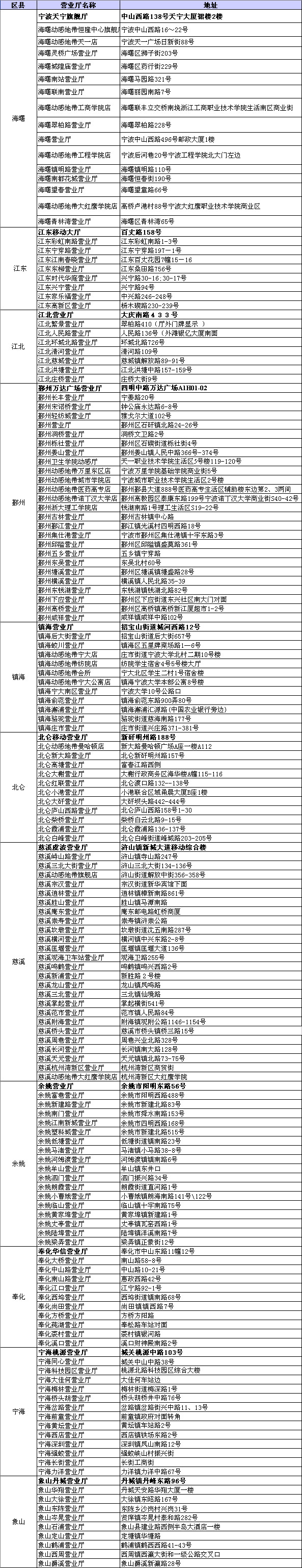 寧波移動(dòng)營(yíng)業(yè)廳地址