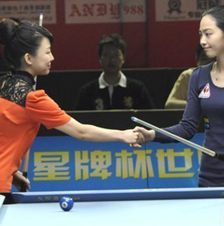 騰訊體育訊北京時間6月10日消息,2011世界九球中國公開賽今天繼續(xù)進行小組雙敗賽的爭奪,中國九球天后潘曉婷與韓國美女球手車侑藍(lán)在勝部第三輪對決,最終車侑藍(lán)以7-4贏下比賽,在被譽為死亡之組的H組中率先出線,晉級16強。潘曉婷落入敗部,將與上輪對手周婕妤再次相遇,爭奪一個小組出線權(quán)。