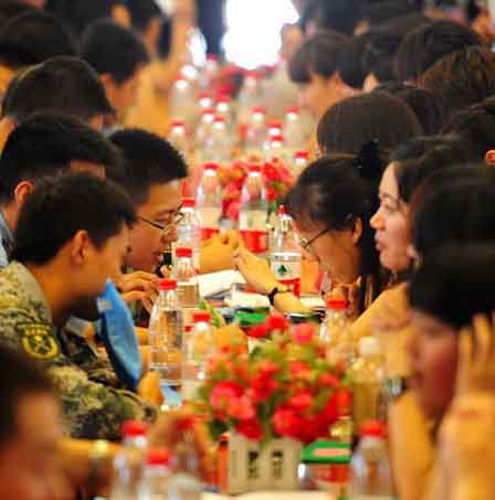 2011年6月11日,北京市民政局、北京市婦聯(lián)、北京衛(wèi)戍區(qū)政治部于6月11日,聯(lián)合在北京衛(wèi)戍區(qū)禮堂舉辦了“相約綠色軍營,牽手最可愛的人”大型聯(lián)誼會。一向嚴肅神秘的北京衛(wèi)戍區(qū)里熱鬧非凡,連門口的哨兵都滿臉笑容,眉飛色舞。200多靚麗大方的女青年風姿綽約地走入衛(wèi)戍區(qū)禮堂,與早已等待此處的年輕軍官相親。