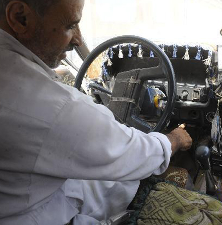 6月25日,在也門首都薩那,一名出租車司機(jī)展示其汽車的“動(dòng)力裝置”。薩那自3月起燃料短缺,目前由于無(wú)法買到汽油,許多出租車司機(jī)為了營(yíng)生,開(kāi)始使用烹飪用液化氣為汽車提供燃料動(dòng)力。