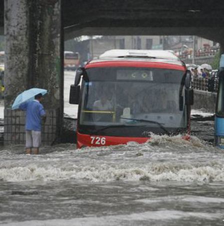 2011年6月28日下午,長沙遭遇暴雨襲擊,城區(qū)部分地段由于積水較深,導(dǎo)致交通受阻。在積水較為嚴(yán)重的長沙市八一橋段,部分車輛已經(jīng)拋錨,被浸水中。