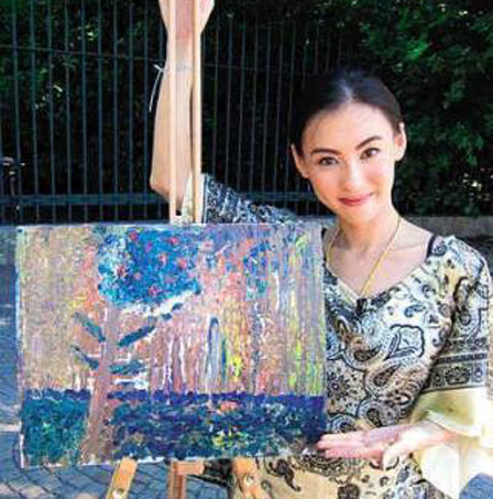 張柏芝說(shuō)平日閑時(shí)的興趣是繪畫(huà)。今次來(lái)到米蘭做節(jié)目,也不忘于酒店房間內(nèi)畫(huà)畫(huà),她表示沒(méi)有正式學(xué)過(guò)畫(huà)畫(huà),是自己慢慢摸索出來(lái)的。有時(shí)更會(huì)教兒子畫(huà),說(shuō)罷隨即向鏡頭展示她電話內(nèi)的相片,相片中是Lucas和一幅畫(huà)的合照,她說(shuō):“這幅畫(huà)是他自己畫(huà)的!