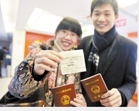 情人節(jié)最浪漫的禮物不是燭光晚餐、鮮花巧克力,而是一張結(jié)婚證。昨天情人節(jié),依舊被無數(shù)新人選為登記結(jié)婚的好日子,用一對(duì)剛剛領(lǐng)到證的甜蜜小夫妻的話說:“在情人節(jié)登記結(jié)婚,昨天是情人,今天是老婆,更值得紀(jì)念!”據(jù)市民政局統(tǒng)計(jì),昨天約有1800對(duì)新人登記結(jié)婚,這個(gè)數(shù)量蓋過往年的情人節(jié),是平時(shí)登記量的10倍,也是我市龍年迎來的第一波結(jié)婚登記高峰。(東南商報(bào))
