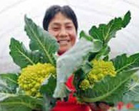 近日,姚東蔬菜基地的一名工作人員正在展示大棚里種植的綠寶塔花菜。據(jù)悉,該蔬菜基地新引進了一千多株特色花菜品種,有紫皇花菜、金花菜和綠寶塔菜。這些花菜以其獨特的外觀和美味受到市場歡迎,每公斤花菜賣到30多元。(余姚新聞網(wǎng))