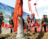 日前,市總工會(huì)組織了50名國(guó)家、省、市級(jí)勞模和五一勞動(dòng)獎(jiǎng)?wù)芦@得者在鎮(zhèn)海區(qū)莊市街道植樹。當(dāng)天,我市“勞模林”在該街道正式動(dòng)工!皠谀A帧币黄诠こ陶嫉9620平方米,除種植觀賞樹木外,周邊還將修建休閑廣場(chǎng)、弧形景觀廊等,計(jì)劃年內(nèi)完工并向市民開放。(寧波日?qǐng)?bào))