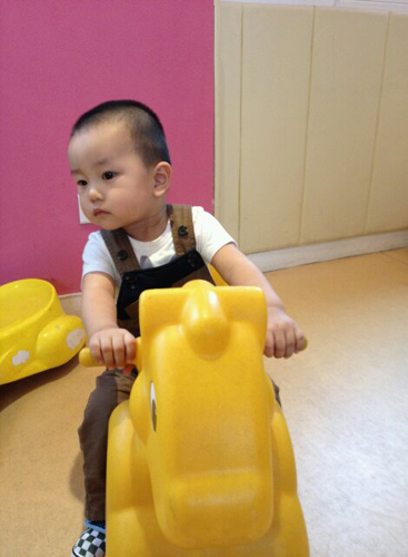 騎上小小玩具木馬,側(cè)著頭看看我的爸爸在干嘛。一旁拍照的麻麻說:“這樣文靜時(shí)候的王子賢也是媽媽的愛,小王子真是媽媽的乖崽崽 ~”嘻嘻嘻,麻麻你就慢慢看著會越來越多變化的小王子吧!
