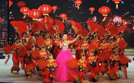 圖為寧波市歌舞劇院的演員在表演歌舞《春暖花開》。