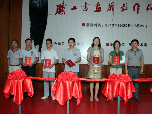 儀式上,出席活動(dòng)的領(lǐng)導(dǎo)分別為美術(shù)、書(shū)法、攝影獲獎(jiǎng)作品,頒發(fā)三等、二等及一等獎(jiǎng)獎(jiǎng)狀,為此次書(shū)畫(huà)攝影作品站揭幕剪彩。