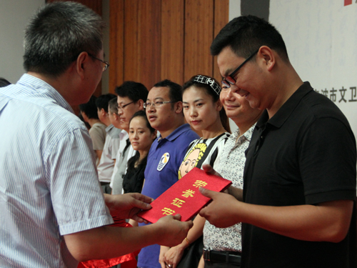 寧波市文化廣電新聞出版局黨委委員、組織人事處處長(zhǎng)呂勇為二等獎(jiǎng)獲得者頒獎(jiǎng)。