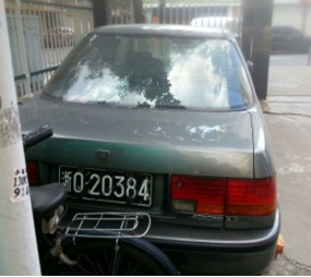 江廈新街社區(qū),新街社區(qū)天之海大廈西門內(nèi)部,車牌號為浙O.20384。