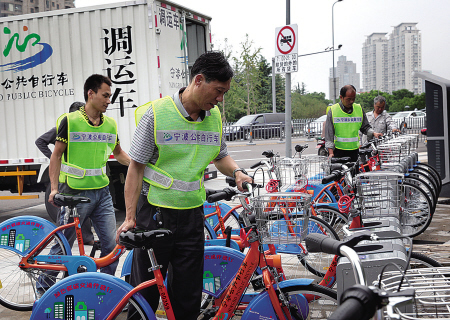 首批公共自行車市區(qū)32個網(wǎng)點投放營運以來,該公司組織6輛調(diào)運車和一批人員及時調(diào)配租車系統(tǒng)。借助智能化管理系統(tǒng),采用集中調(diào)度、跨區(qū)調(diào)度和指令調(diào)度相結合的模式,盡量確保各租賃點車輛動態(tài)平衡。