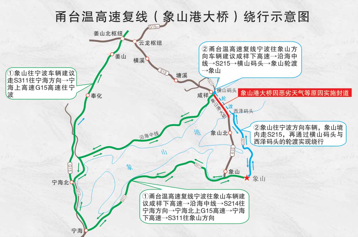 如角洞岙隧道擁堵,甬臺溫高速復(fù)線象山往寧波方向車輛建議塘溪下高速→S215往寧波方向→橫溪上高速;寧波往象山方向車輛建議橫溪下高速→S215往象山方向→塘溪上高速。