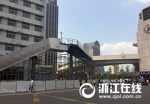 這兩座天橋分別位于城站火車(chē)站二樓平臺(tái)的南北兩側(cè),由人行扶梯上行,下部分別在紅樓大酒店及西湖飯店門(mén)口落地。今天,浙江在線記者來(lái)到現(xiàn)場(chǎng),看到兩座天橋均已基本完工。每座天橋都設(shè)有一對(duì)雙向的人行扶梯,配有夜景照明;橋面還鋪設(shè)了環(huán)保瀝青顆粒,起到防滑作用。