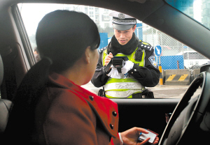 昨天,海曙交警在轄區(qū)主要路口開展交通整治行動。交警提醒,邊開車邊玩手機的行為非常危險,發(fā)生事故的概率是正常駕駛的兩三倍。圖為交警在中山西路與環(huán)城西路交叉口查處開車“低頭族”。