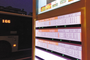 鄞州繁裕二村站臺,公交車到站信息實時顯示在屏幕上。記者 唐嚴(yán) 攝
