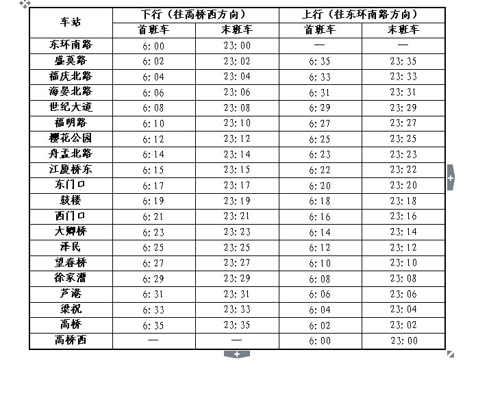 車站工作人員溫馨提醒:跨年夜當晚,東門口站往高橋西方向末班車時間23:17,往東環(huán)南路方向末班車時間為23:20;鼓樓站往高橋西方向末班車時間為23:19,往東環(huán)南路方向末班車時間為23:18。請趕末班車的乘客預留好進站、購票的時間,以免錯過列車。