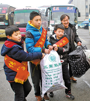 連日來(lái),剛剛放寒假的慈溪市實(shí)驗(yàn)小學(xué)白云校區(qū)“小天使”志愿服務(wù)隊(duì)來(lái)到該市長(zhǎng)運(yùn)中心開(kāi)展志愿服務(wù)活動(dòng)。“小天使”們熱情地為旅客送上一杯杯熱茶,還盡力幫助旅客搬運(yùn)行李。(林松根 嚴(yán)龍 攝)