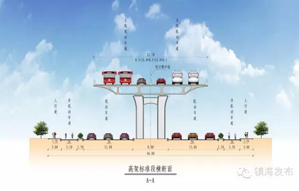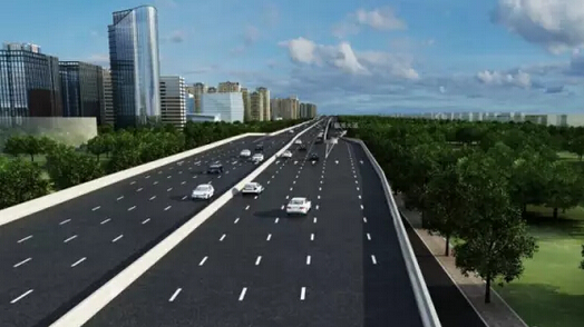 建設(shè)標(biāo)準(zhǔn):全長約4.1公里,寬度68米,采用“主線+輔道”的建設(shè)形式。主線建設(shè)標(biāo)準(zhǔn)為城市快速路,設(shè)計車速80公里/小時;地面輔道建設(shè)標(biāo)準(zhǔn)為城市主干道,設(shè)計車速50公里/小時。