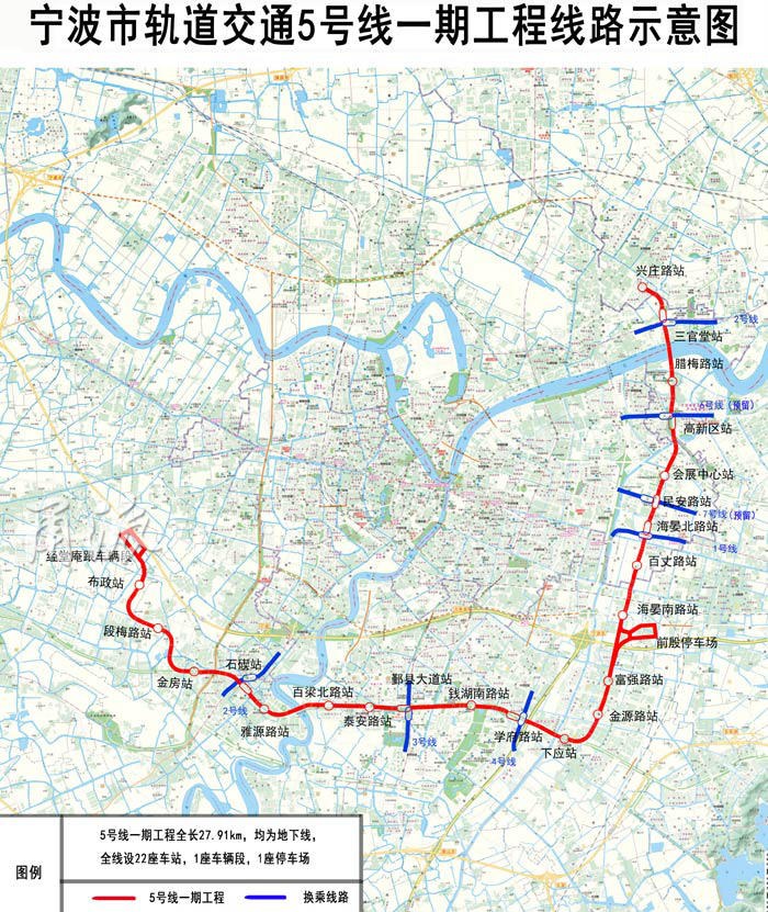 按照計(jì)劃,5號(hào)線一期西起鄞州布政,止于鎮(zhèn)海興莊路站,將在年內(nèi)開工建設(shè),工期5年。