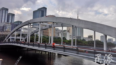 目前,靈橋大修工程的欄桿安裝、管線回遷、表面涂裝等工作已基本完成,功能性照明、景觀燈等相關(guān)附屬設(shè)施也正在抓緊安裝當(dāng)中。