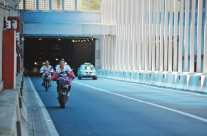 昨天下午,記者向海曙交警大隊咨詢此事,民警石警官介紹,早在尹江路隧道開通之初,他們就注意到了這一問題。從抄近路的角度來說,走隧道肯定是方便的,但機非混合通行則非常危險。雖然截至目前還沒有發(fā)生過事故,并不代表就沒有安全隱患。