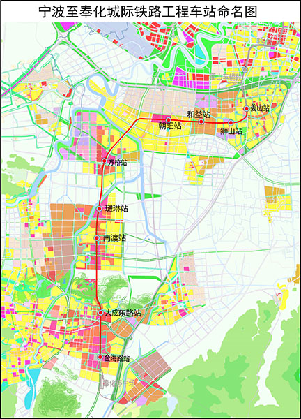 寧波至奉化城際鐵路工程自3號(hào)線南端高塘橋站引出,終于奉化區(qū)金海路,共設(shè)車站9座。