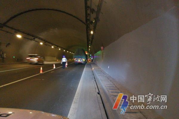 5月17日晚上7時25分許,郭師傅駕駛半掛貨車開往上海。在途徑G15沈海高速往上海方向長溪嶺隧道內(nèi)時,因氣溫炎熱,排氣管發(fā)生故障,車輛拋錨在第三車道。寧波高速交警二大隊民警何雋、協(xié)警裘為軍接警后火速趕往現(xiàn)場,進行示警處置。