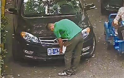 到了1點(diǎn)35分,沈某再次回轉(zhuǎn)。不過這次,他手里好像握了一樣?xùn)|西。接下來的動(dòng)作便讓人詫異了,只見沈某看了一眼周邊之后,便用手里的餐巾紙將車牌的一側(cè)號(hào)碼遮擋了起來。