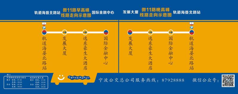 從今天起,寧波公交對微11路進行加密班次和延時服務,以更好的滿足中央廣場金融片區(qū)周邊上班族的乘車需求。