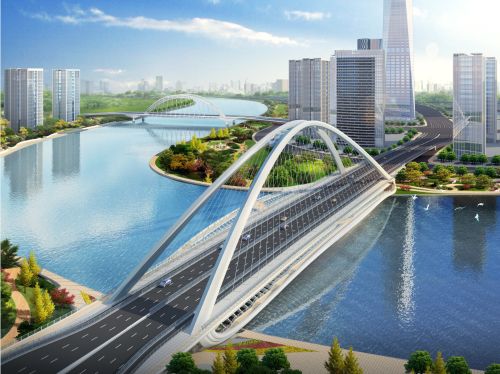 值得注意的是,跨奉化江采用一跨過江下承式系桿拱橋形式,通航等級為V級航道。