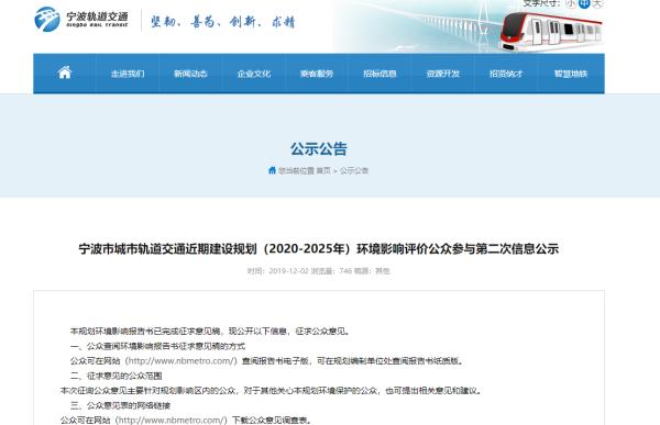 昨天上午,寧波軌道交通官網(wǎng)發(fā)布了《寧波市城市軌道交通近期建設(shè)規(guī)劃(2020-2025年)環(huán)境影響評(píng)價(jià)公眾參與第二次信息公示》(以下簡稱《公示》)。