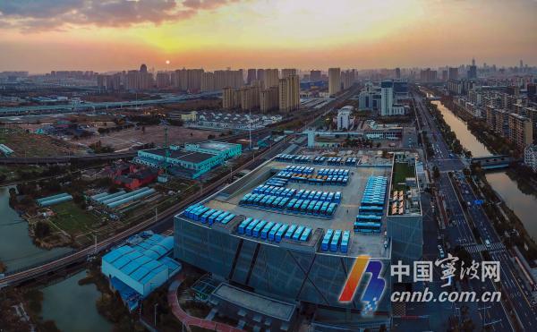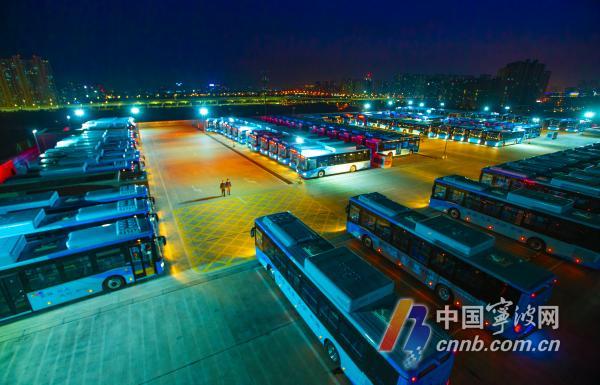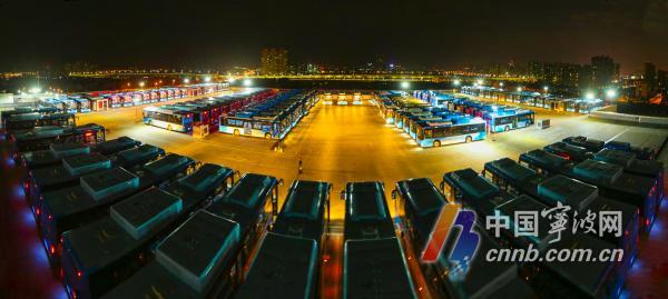 近日,又一批插電式混合動力新能源公交車,抵達(dá)寧波公交集團(tuán)位于東部新城的一體化綜合停車場。昨晚,華燈初上,百余輛公交車整齊劃一地停放在立體停車場頂樓,宛如一部科技大片。