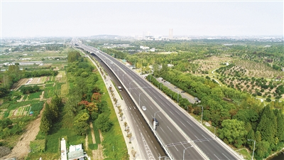 道路設(shè)計(jì)充分考慮了沿線地形地質(zhì)特征和環(huán)境條件,加強(qiáng)交通與沿線生態(tài)景觀的一體化設(shè)計(jì),做到工程品質(zhì)與自然環(huán)境有機(jī)統(tǒng)一,并以金色系作為綠化景觀主旋律,沿途一整排2.5米高的黃金槐,層次分明,被稱為“金色大道”。