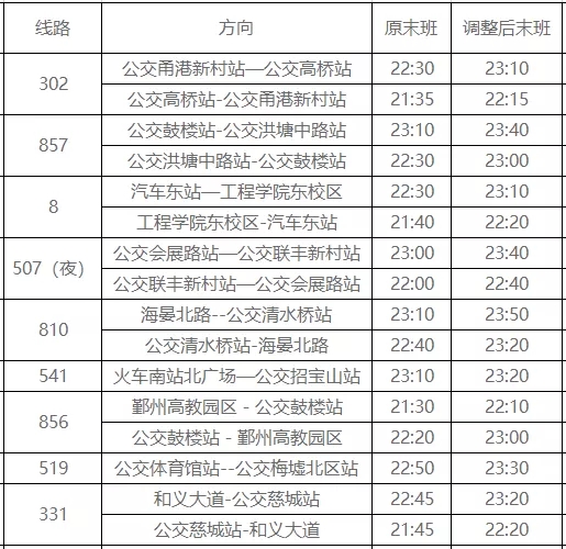 其中,302路、8路、507(夜)路、810路、856路雙向延遲40分鐘,857路雙向延遲半小時,331路雙向延遲35分鐘,519路體育館站往梅墟北區(qū)站方向單向延時40分鐘,541路火車南站北廣場往公交招寶山站方向單向延遲10分鐘發(fā)車。