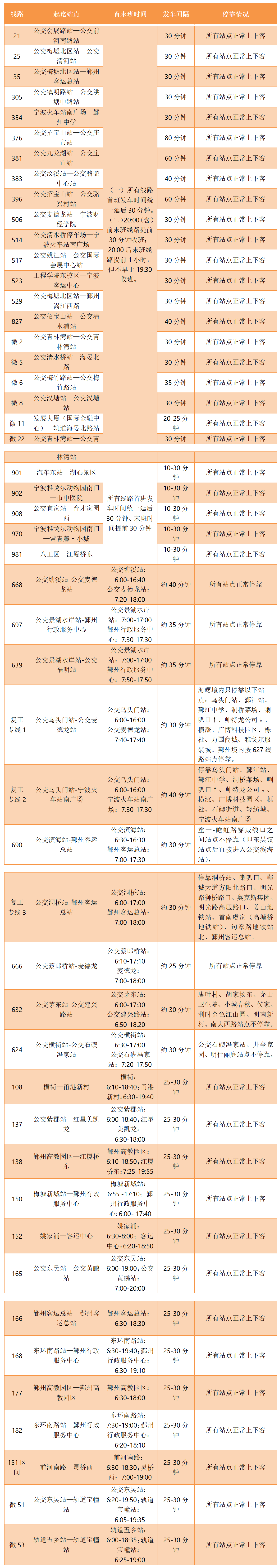 15日,寧波軌道交通大部分區(qū)間恢復(fù)運(yùn)營,公交運(yùn)營隨之相應(yīng)調(diào)整。