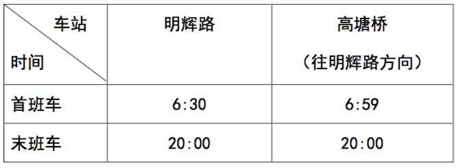 ●早高峰(7:00—8:30)及晚高峰(16:30—18:00)期間,行車間隔7—8分鐘。其他運(yùn)營(yíng)時(shí)段,行車間隔約15分鐘。
