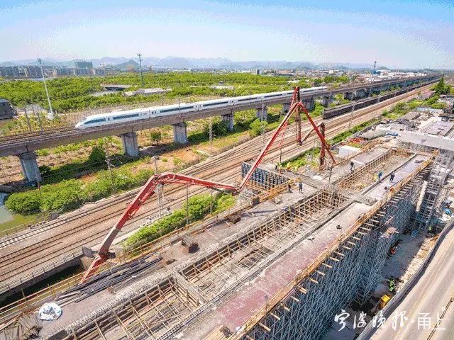 4號(hào)線上跨杭深、蕭甬鐵路工程項(xiàng)目施工總里程長1.5公里,主要包含25孔簡支箱梁、1座地面三層側(cè)式站(慈城站)、1座301米轉(zhuǎn)體連續(xù)剛構(gòu)橋以及甬余線江北大道1.8千米道路改造工程。