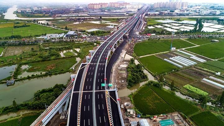 其中,機場快速路南延南段工程橫跨鄞州、奉化,北起繞城高速,南至奉化區(qū)岳林東路,全長14.4公里,采用“主線高架+地面輔道”的建設(shè)形式,標(biāo)準(zhǔn)段設(shè)置雙向6車道,高架主線設(shè)計時速80公里每小時,地面輔道設(shè)計時速50公里每小時。