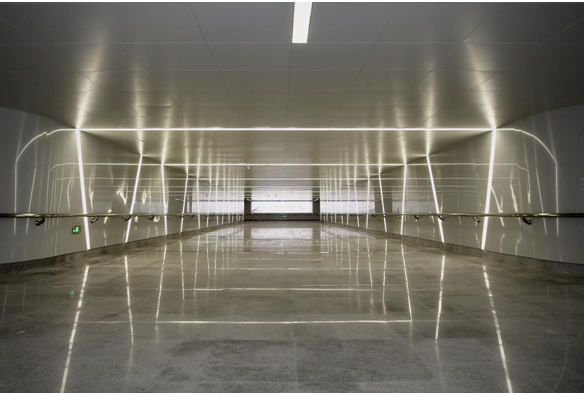 交叉口中央的“工”形地下通道(如上圖)為單層人行通道,市民可以通過步行直接從地下或地上入口進(jìn)入永泰公園和印象城、寶龍廣場(chǎng)、萬象匯商城。