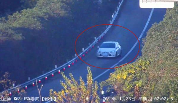 高速上有一輛小車在逆行。本文圖片由高速交警提供