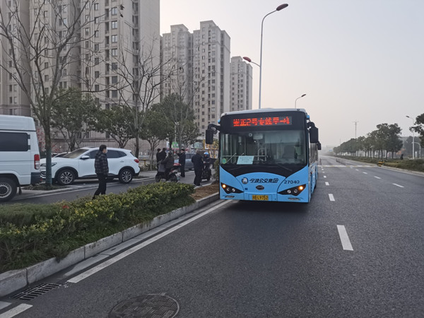 2月14日上午7:25,標(biāo)注著“崇正1號(hào)專(zhuān)線早”和“崇正2號(hào)專(zhuān)線早”的4輛定制公交車(chē),滿載著150余名學(xué)生以及個(gè)別陪同家長(zhǎng),分別從莊市行政服務(wù)中心和翰香景庭西門(mén)出發(fā),經(jīng)過(guò)20分鐘的車(chē)程,到達(dá)了鎮(zhèn)海區(qū)崇正書(shū)院西門(mén)。