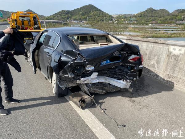 高速公路公共視頻顯示,事發(fā)前,有幾輛小車在寧波方向橫溪互通附近同向行駛,車速都不快,但距離都跟得很近,最后一輛黑色雷克薩斯操作不慎,與前一輛面包車發(fā)生了追尾,兩車均停在第一車道。