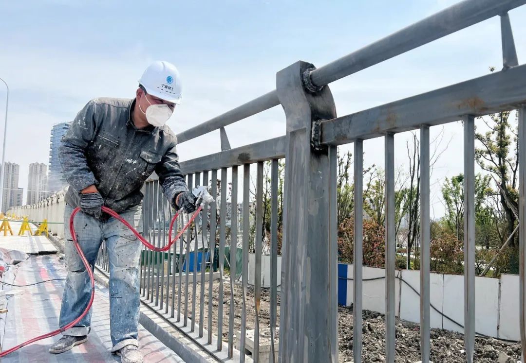 清明小長(zhǎng)假期間,該工程全體施工人員和管理人員沒有放假。47歲的油漆工魯云華正在給大橋護(hù)欄噴灑油漆,他笑著說:“早上7點(diǎn)就到工地了,大橋離通車越來越近了,得抓緊時(shí)間搶工期!”