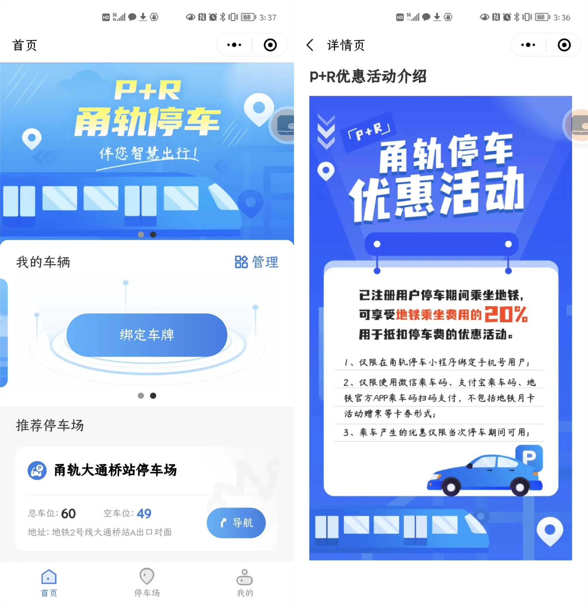 市民可以在微信、支付寶搜索“甬軌停車”,或在現(xiàn)場掃描二維碼進入小程序,出現(xiàn)“P+R”甬軌停車界面后完成注冊并綁定車牌即可停車,注冊用戶在停車期間乘坐地鐵,還可享受地鐵乘坐費用的20%用于抵扣停車費的優(yōu)惠活動。